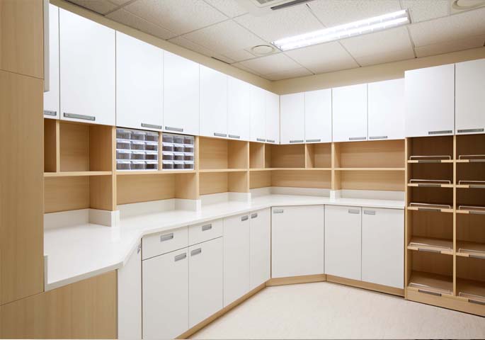 詩燁結合醫院藥房的足夠空間,設計出適合醫生護士合理的中西醫藥房案例圖片,功能和美學的完美結合體體現在藥柜藥架系列,不僅僅提供儲藏功能,不僅僅是取用方便,亦通過提煉設計元素,將產品設計人性化美觀化。
