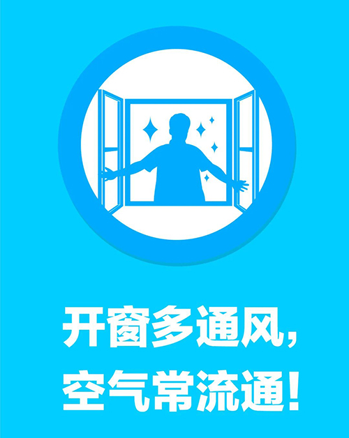 注意經常開窗通風,保證新鮮空氣能進入室內,每天至少兩次,每次至少30分鐘。使用空調時,也要注意通風換氣。