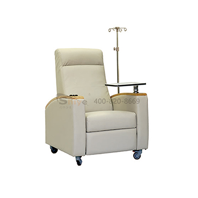 日常清潔消毒是基礎保養環節,需遵循定期清潔、分類消毒原則。門診輸液椅每日清潔不少于 1 次,就診高峰可增至 2-3 次;住院部輸液椅按班次清潔消毒。清潔時使用軟布蘸取清水或中性清潔劑擦拭,重點清潔扶手、靠背、控制面板等高頻接觸部位,清理縫隙內灰塵與雜物。深度消毒選用 75% 醫用酒精或符合院感標準的消毒劑,擦拭后停留 3-5 分鐘,再用清水擦除殘留,避免藥液、體液腐蝕材質。皮革、PU 面料清潔后可涂抹專用保養油,保持柔軟耐磨;嚴禁使用硬刷、鋼絲球、強酸堿清潔劑,防止劃傷、腐蝕表面。若發生藥液滲漏,立即用清水沖洗并消毒,避免殘留損壞部件。
